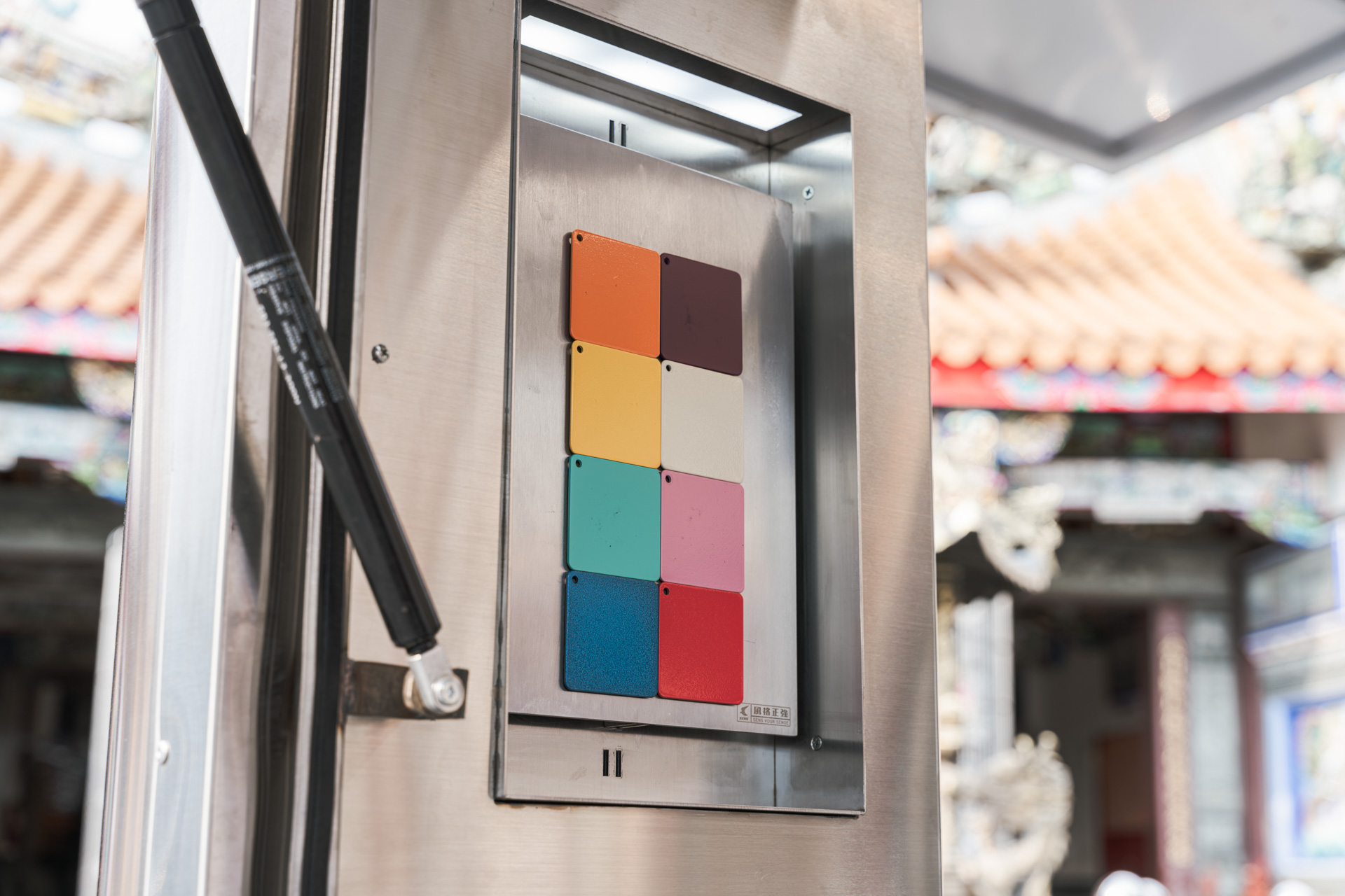 運用有限的車內空間為風扇搭建屬於他的展示台。增加空間的通透感,可更容易看見風扇的細節與與各式風力的體驗。正強的風扇擁有多種顏色可供選擇,製作成可磁吸的烤漆鐵片色票,可依色系規劃替換在展示板上,供現場客人做產品顏色的參考。型錄放置盒可容納多種尺寸類型型錄或酷卡,以因應各種不同活動之宣傳。